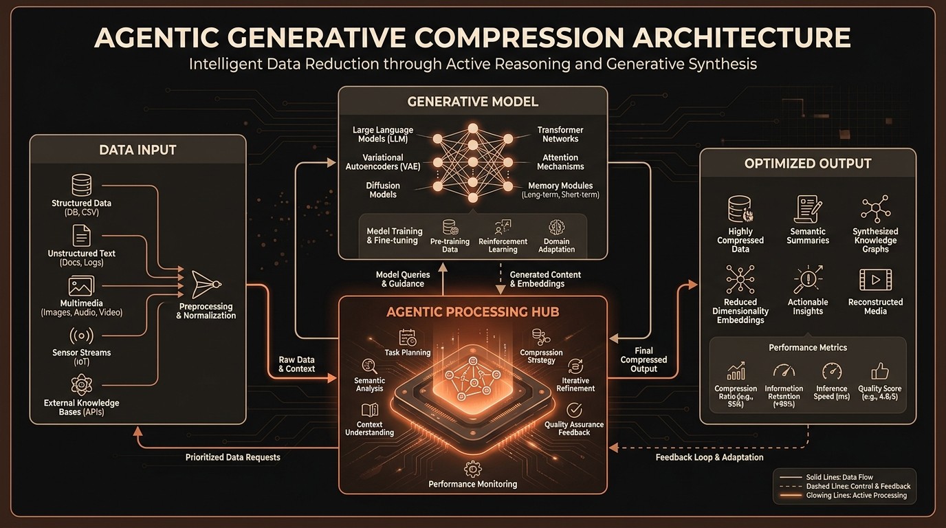 Agentic generative compression leverages AI agents to optimize data compression dynamically.