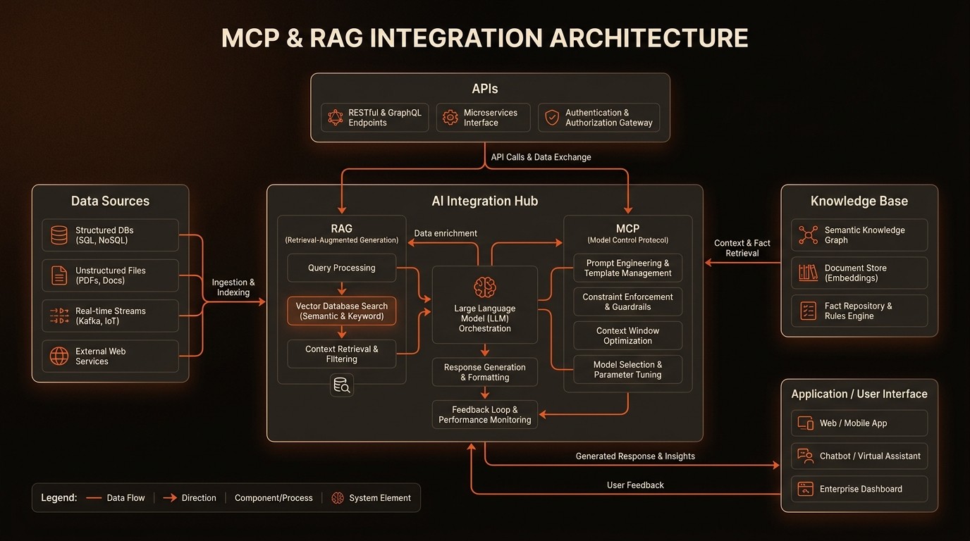 Develop a Robust Infrastructure: Ensure that your organization has the necessary infrastructure to support the chosen AI enhancement strategy. This includes setting up a vector database for RAG or establishing API connections for MCP.